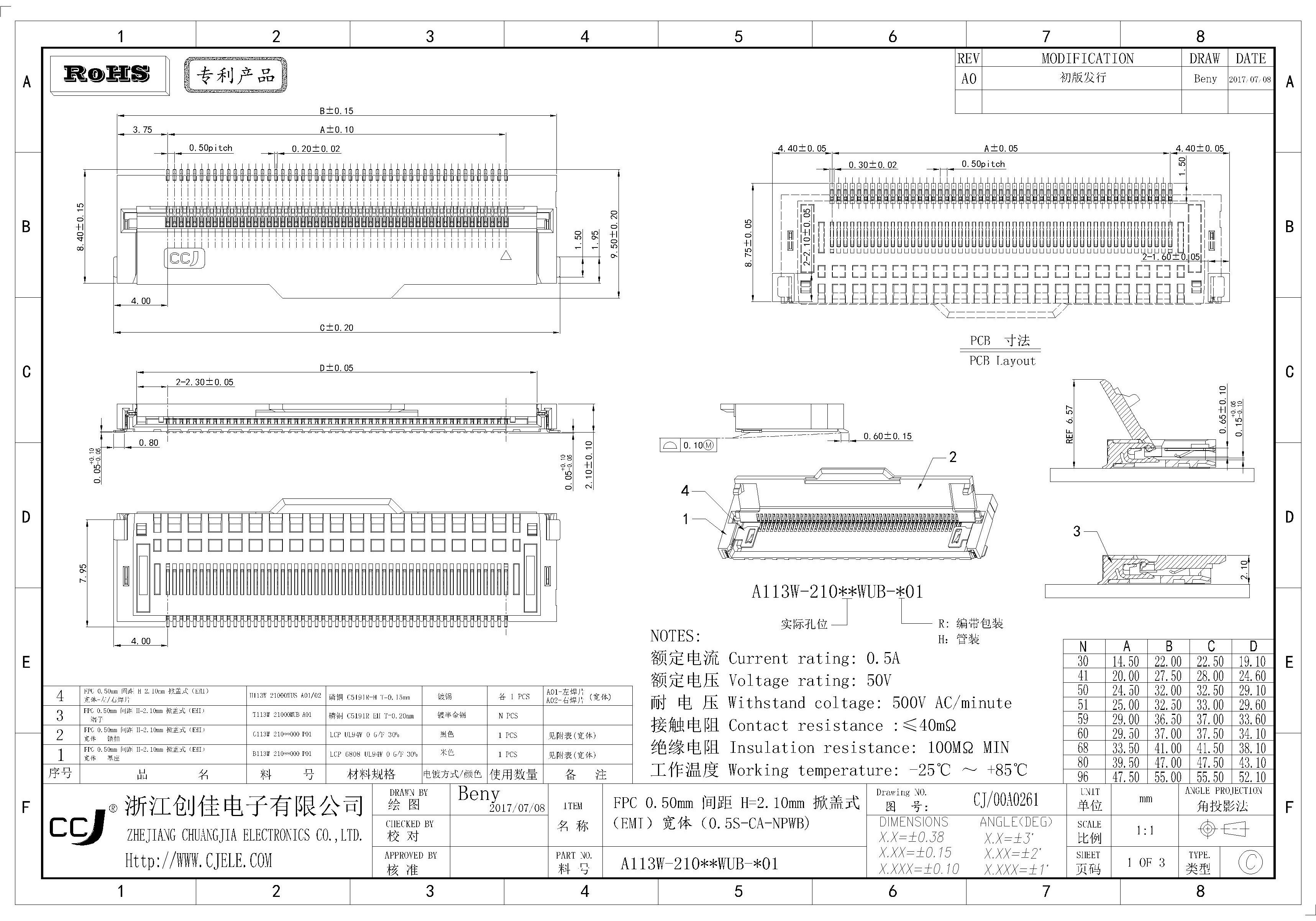 0.5mm間距2.1高掀蓋式FPC(CT)