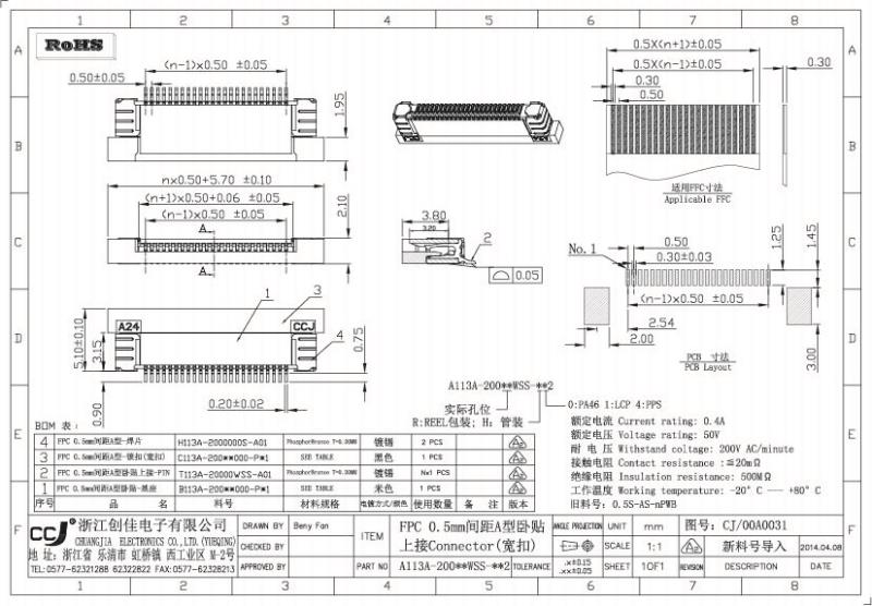 0.5mm間距全包上接抽屜式FPC