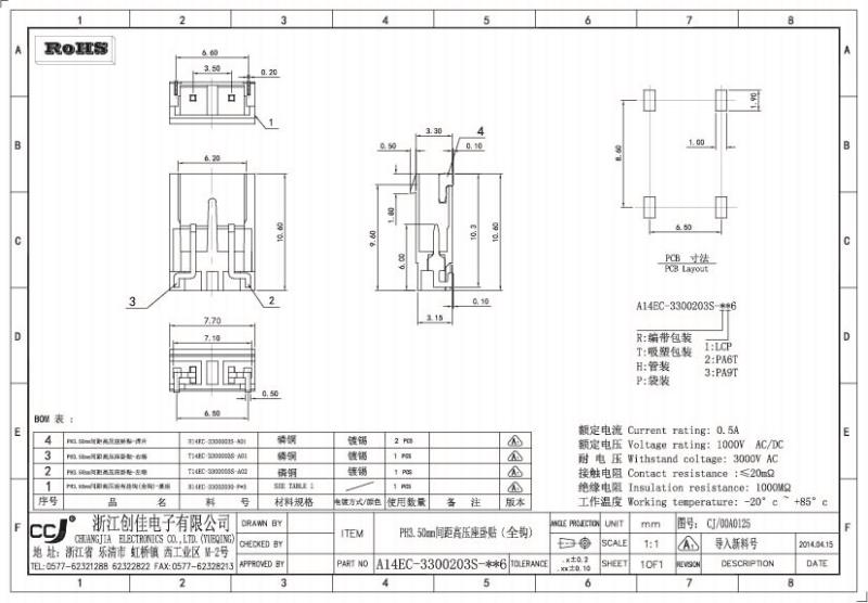 3.5mm間距SMT高壓座