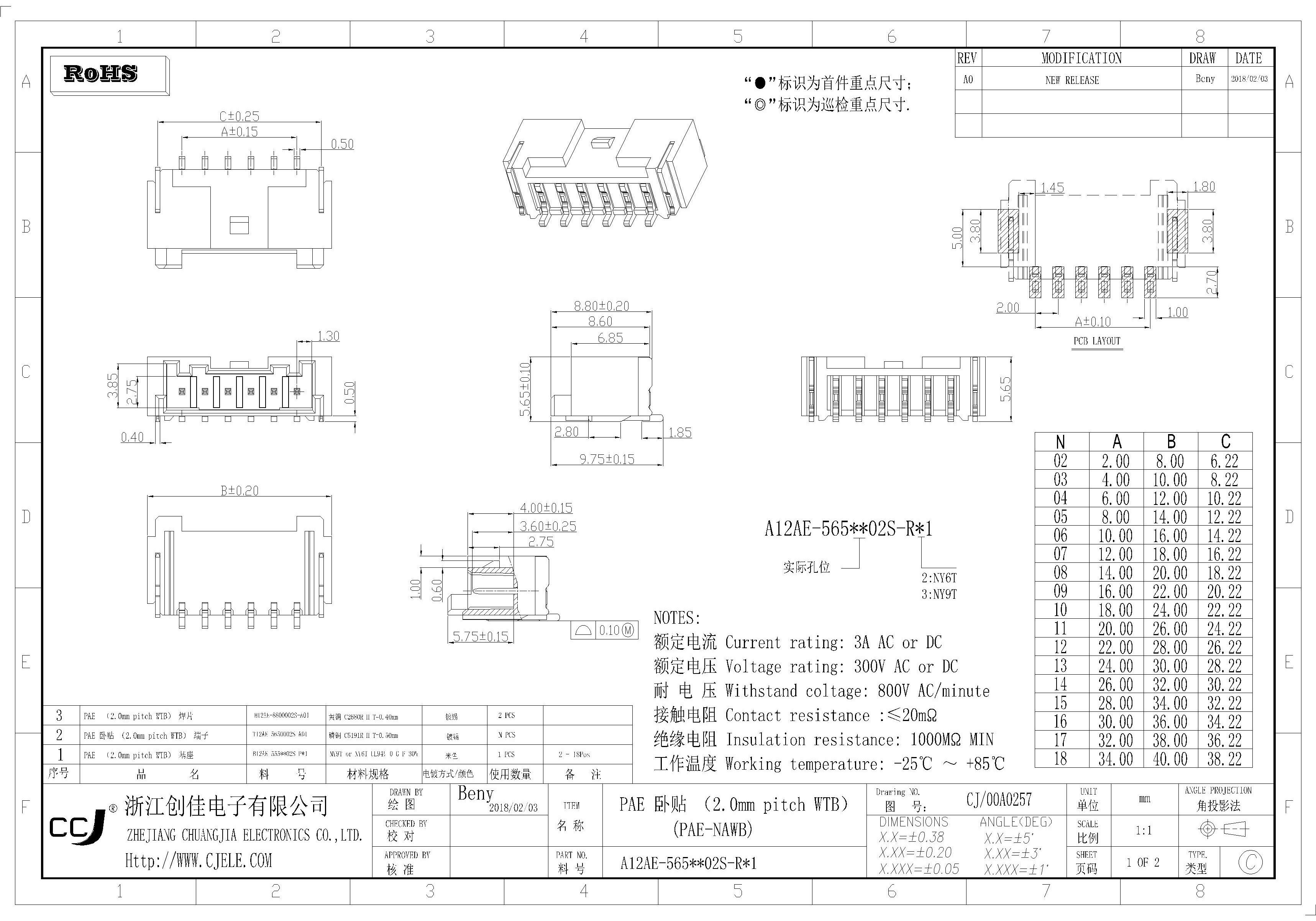 PAE 2.0mm間距 立貼