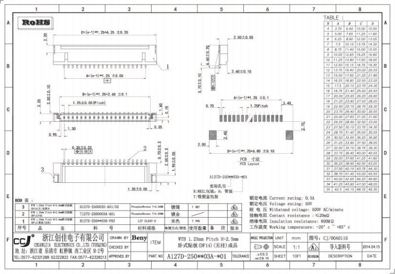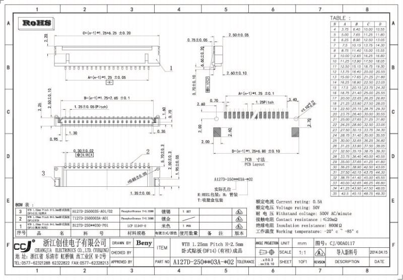 1.25mm間距FPC系列