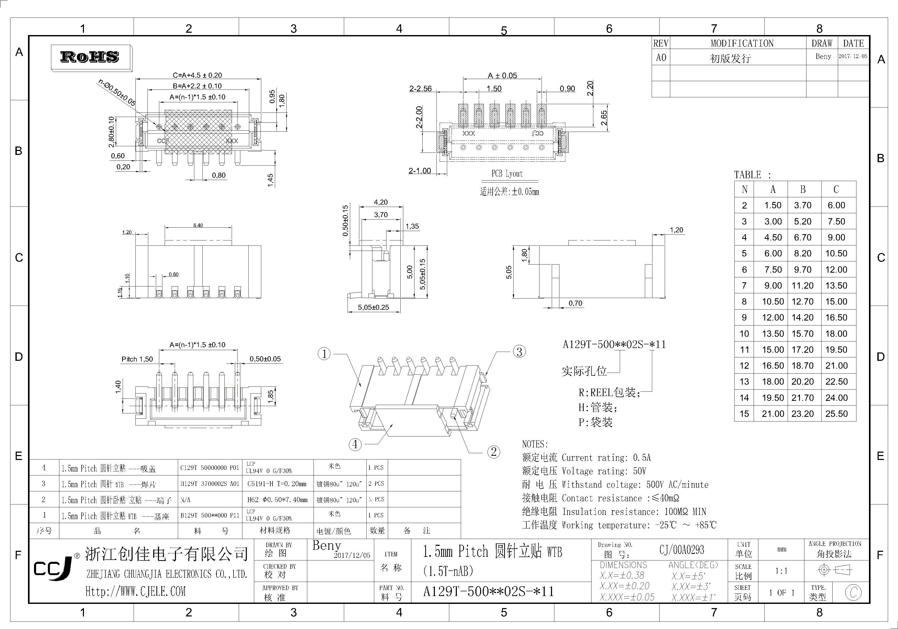 ZH1.5mm Pitch 圓針立貼 WTB