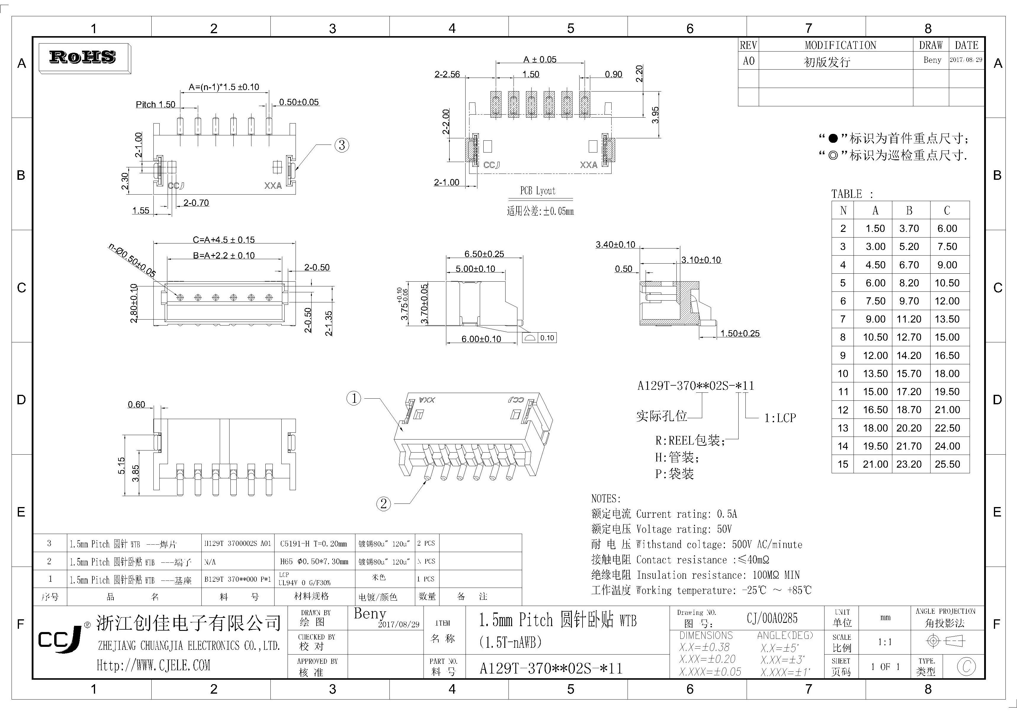 0.80mm間距T1臥貼WTB